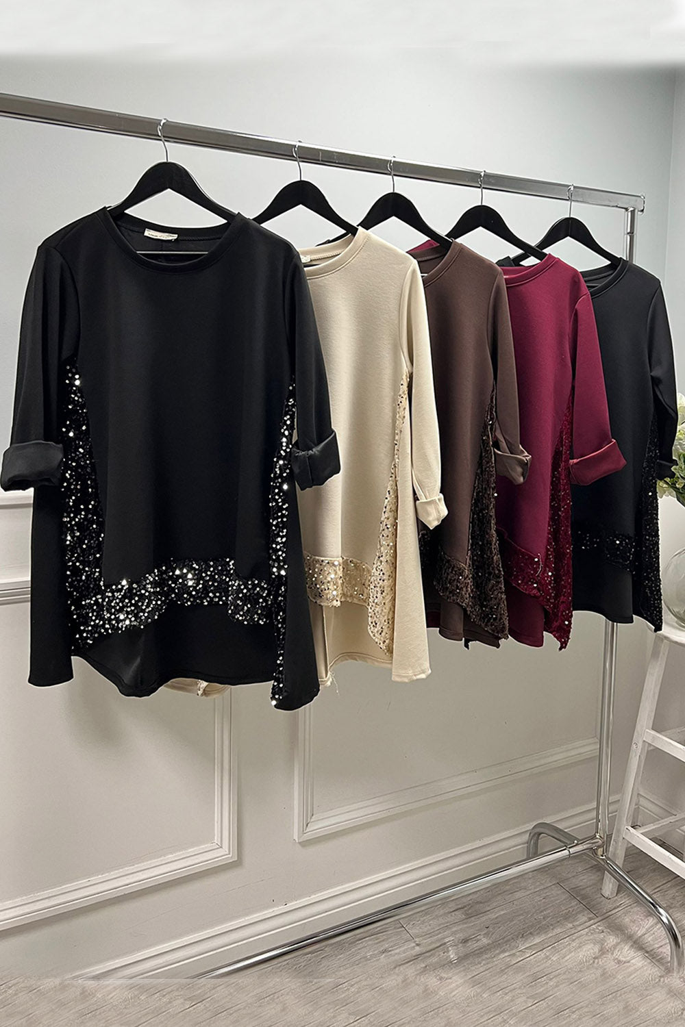 Round neck , relaxed fit Asymmetric high-low jumper