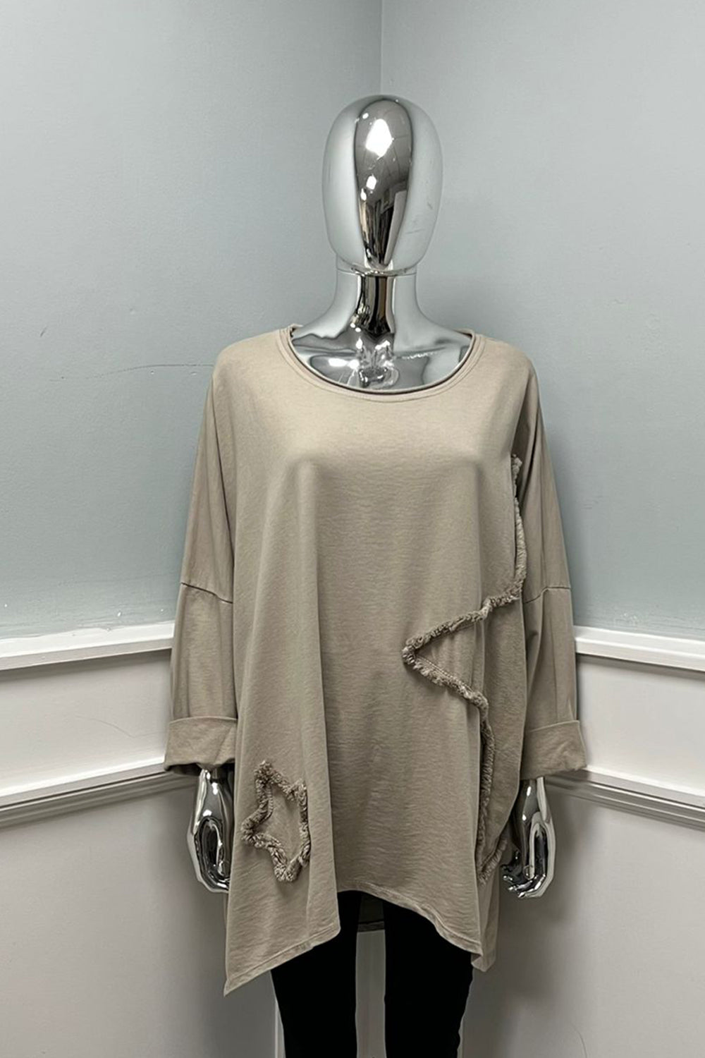 Round Neck, Asymmetric Knitted Jumper.