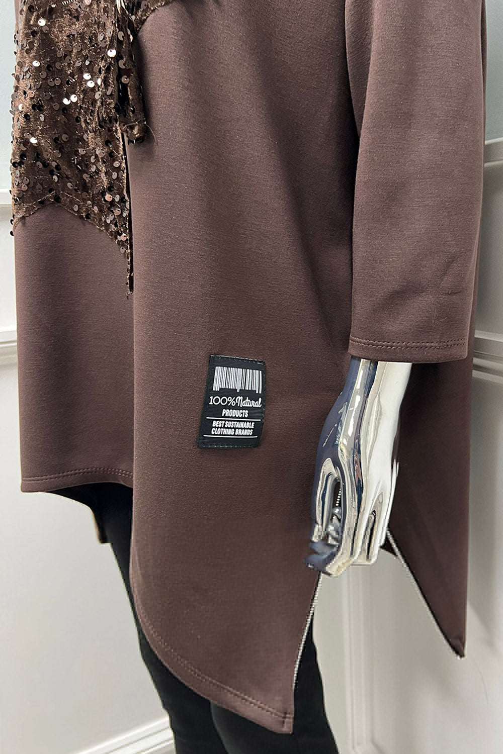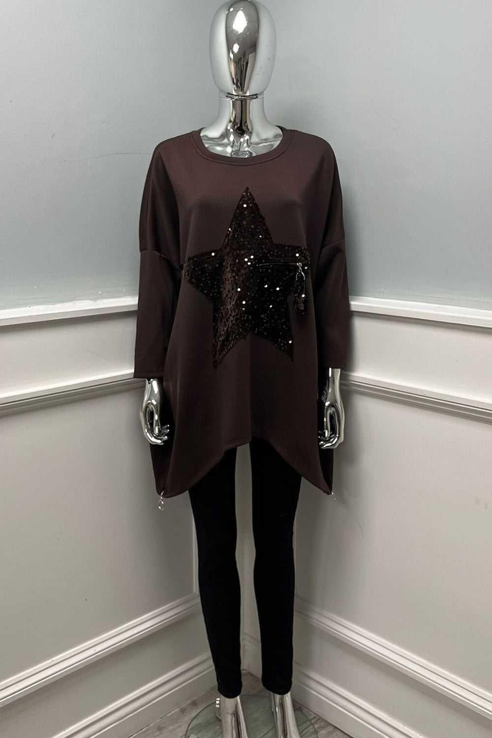 Long Sleeves Round Neck asymmetric hem Jumper with sequin star detail - 07549