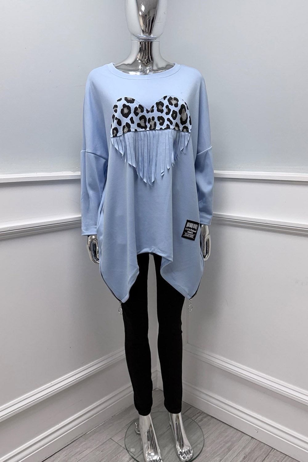 Round Neck, Pearl Detailed, Fleece Lined, High Low Top