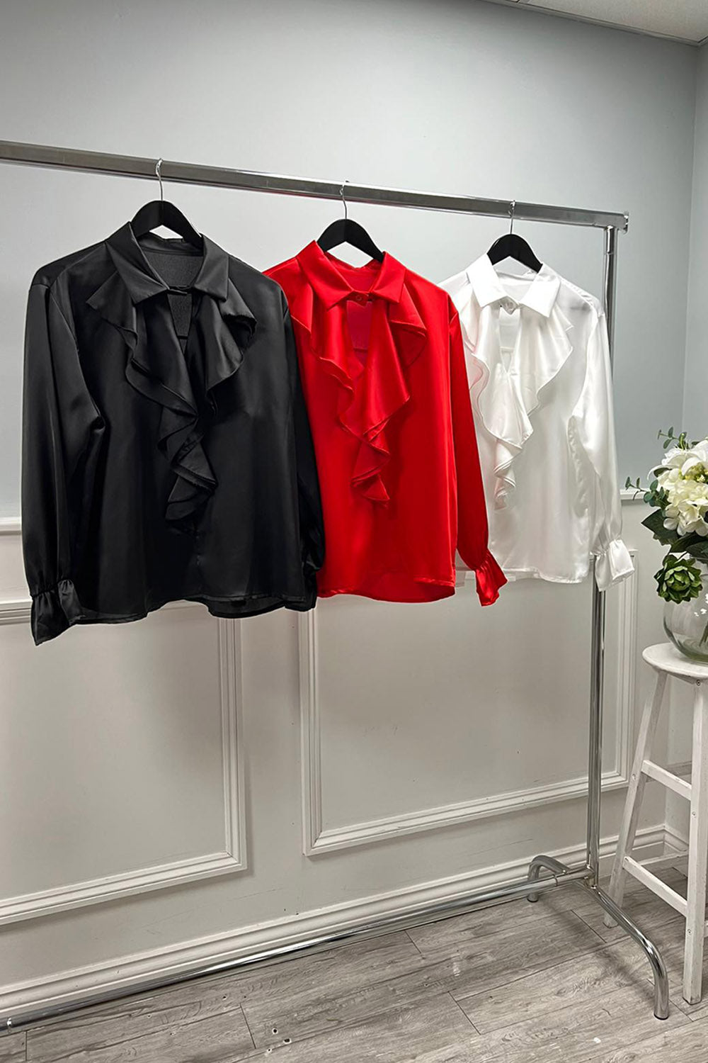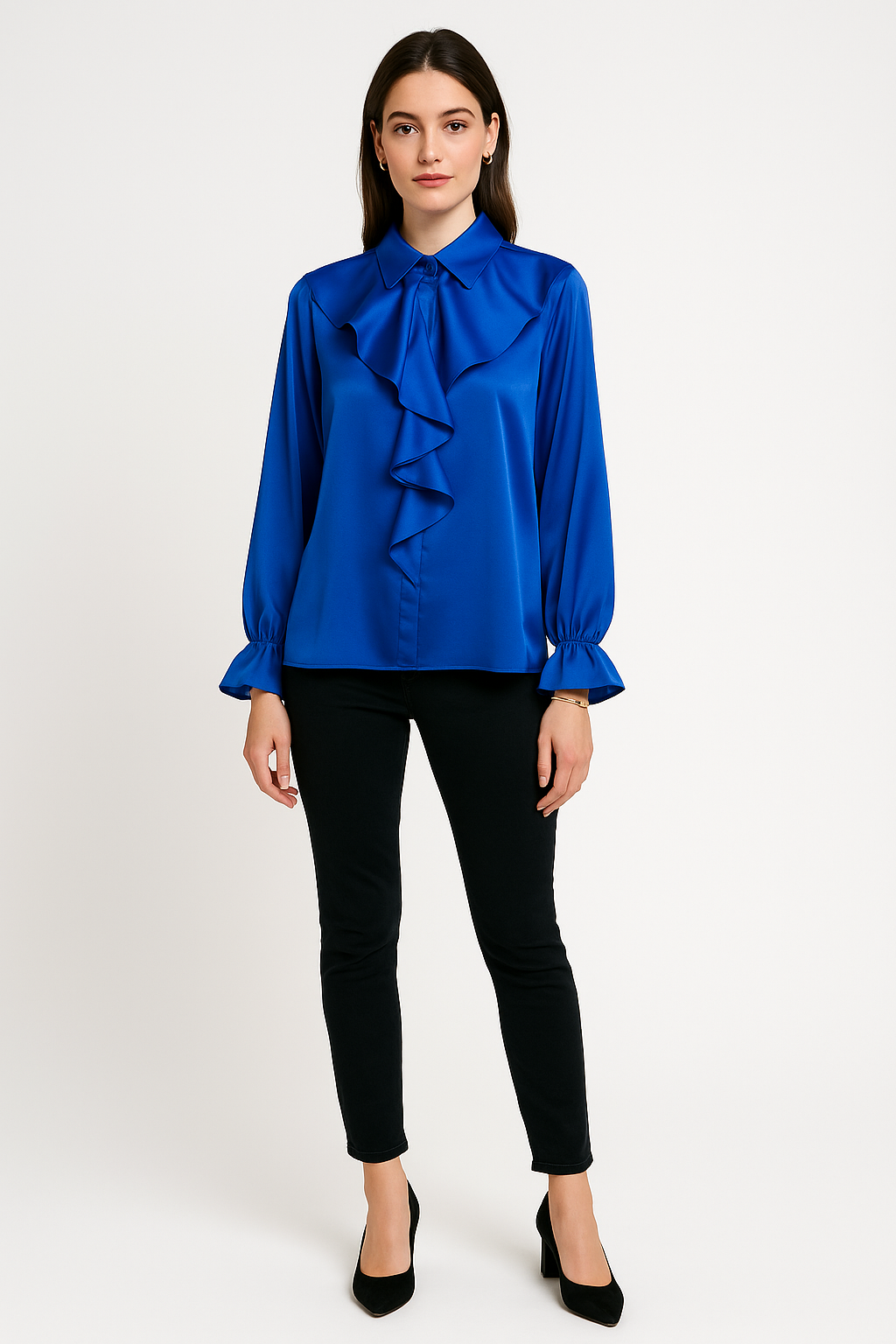 Collared, V-Neck, Elasticated Cuff Sequin Top