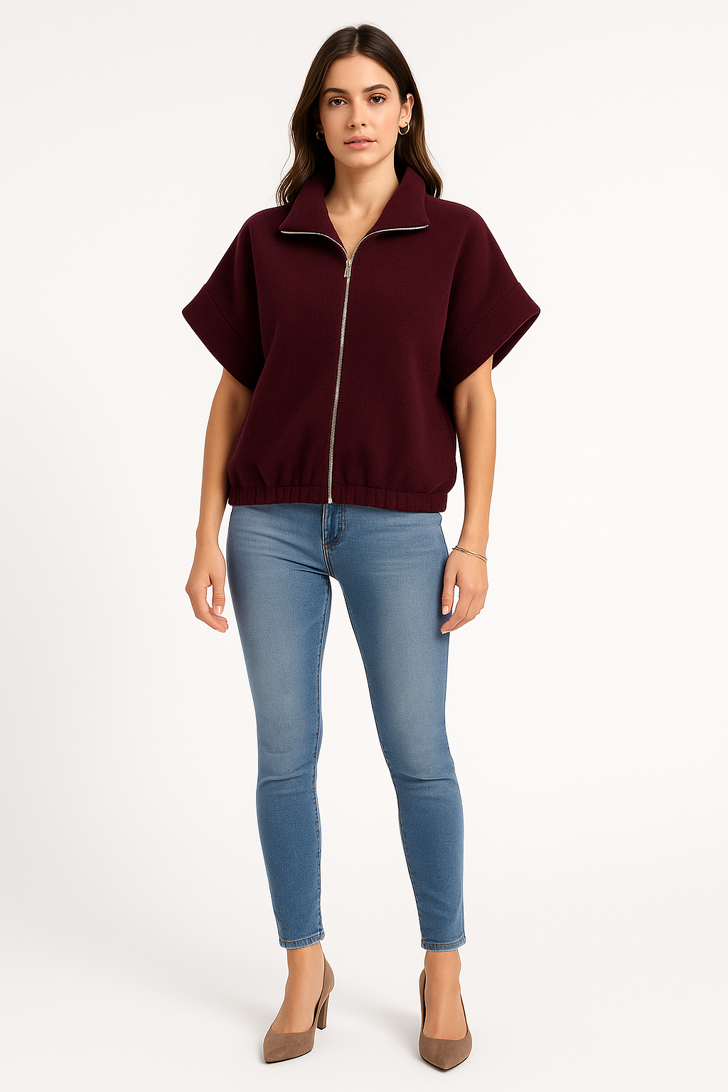 Short-sleeve zip-up jacket