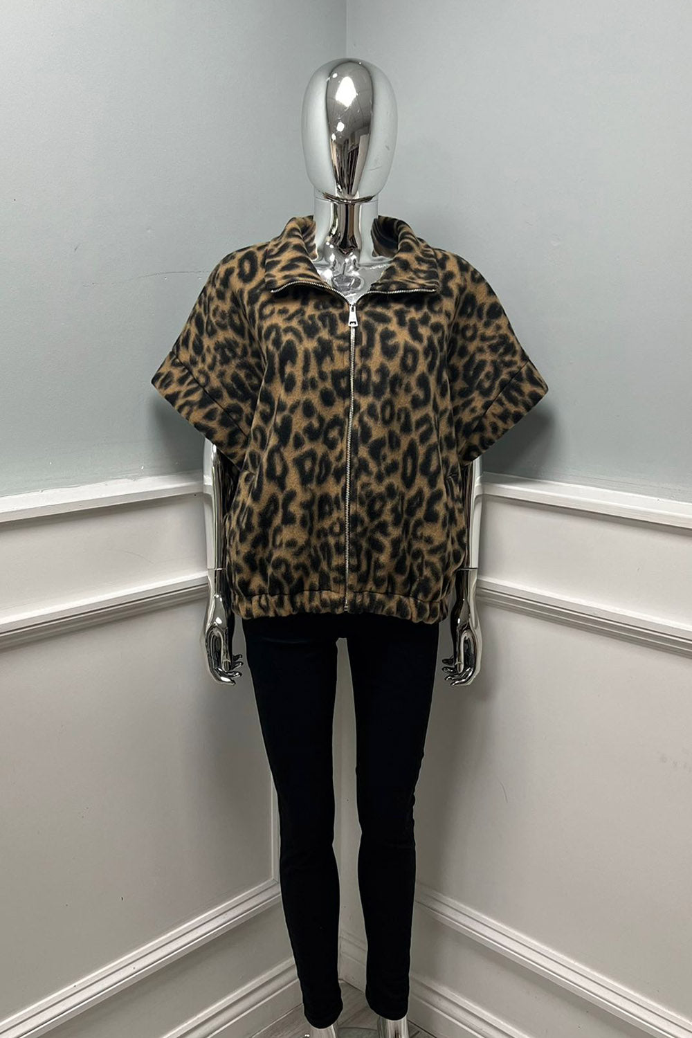 Leopard Print Short-sleeve zip-up jacket - 11803Leopard