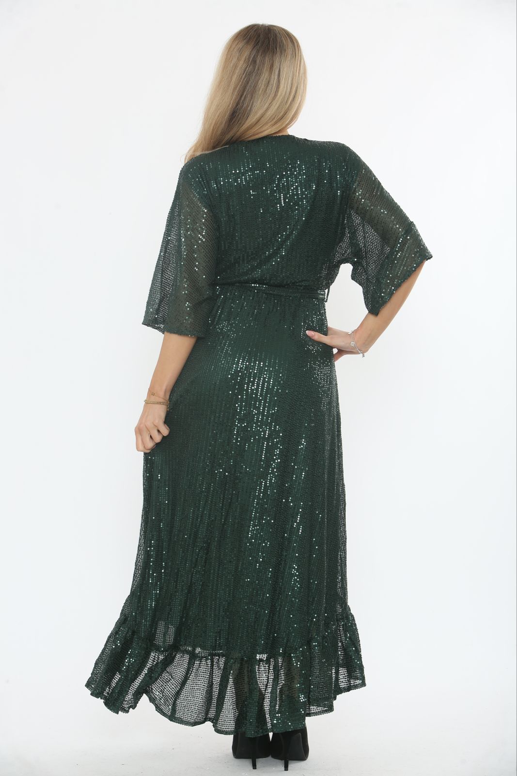 Sequin Drape V-Neck Maxi Dress 9063