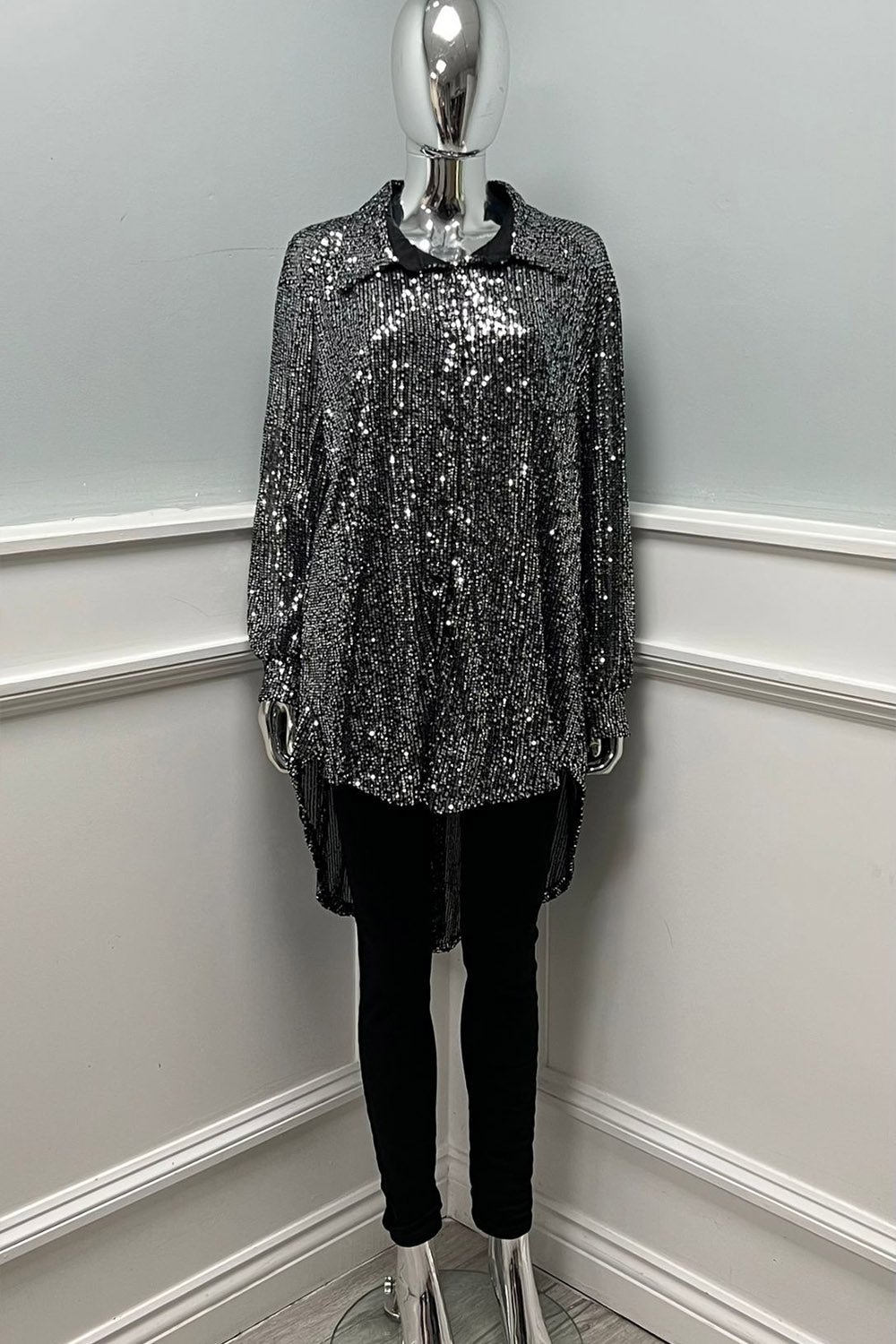 Round Neck , Asymmetric Jumper with Sequined Panel