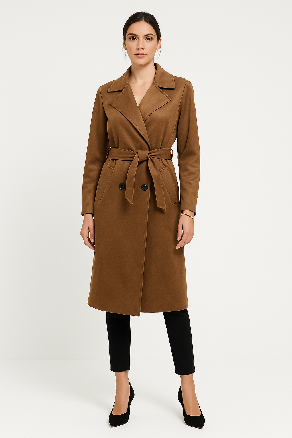 Classic longline trench coat with notched lapel collar, double-breasted front - 2080