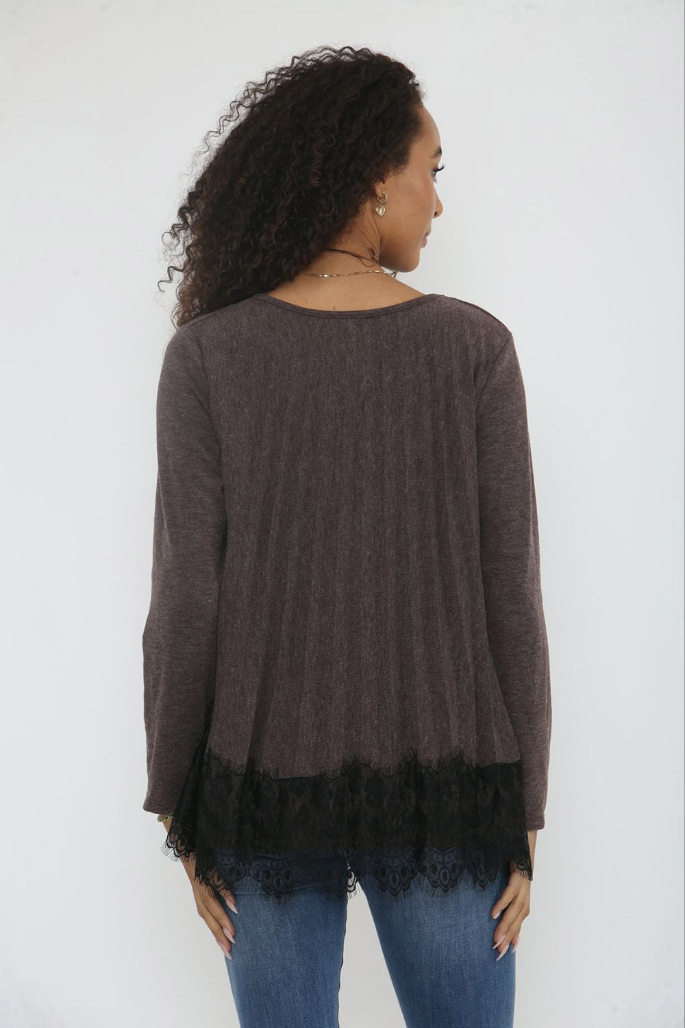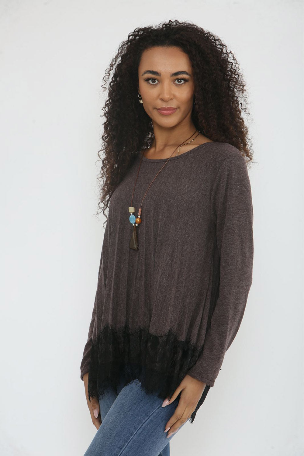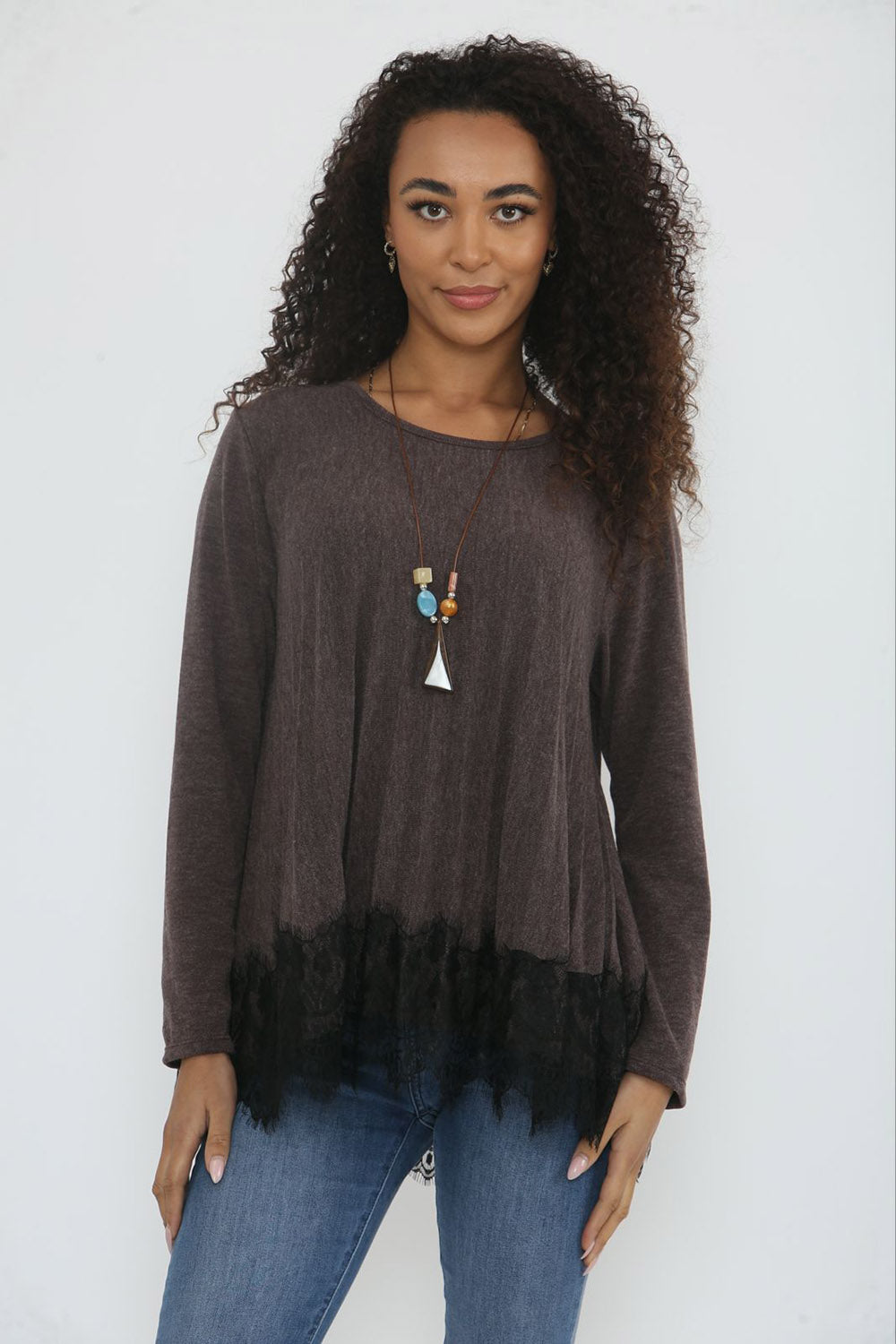 Round Neck, Pearl Detailed, Fleece Lined, High Low Top