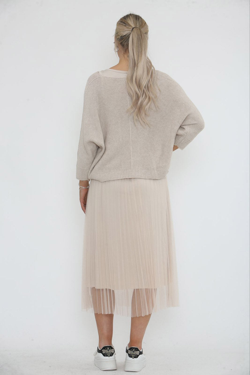 Round Neck, Batwing Top, Sleeveless Mesh Dress Two Piece Set