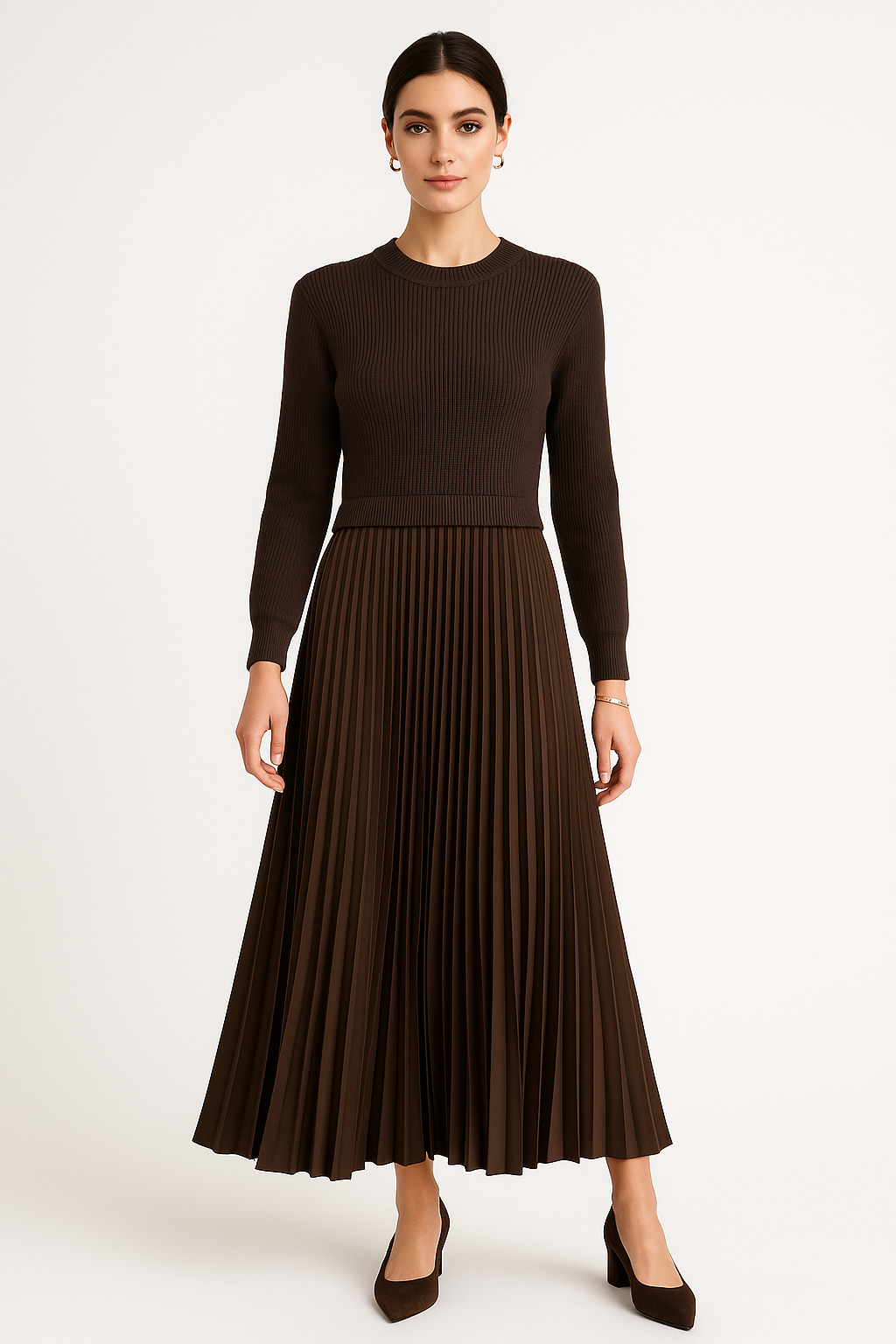 Round Neck, Pleated Hem, Jumper Dress - 24339