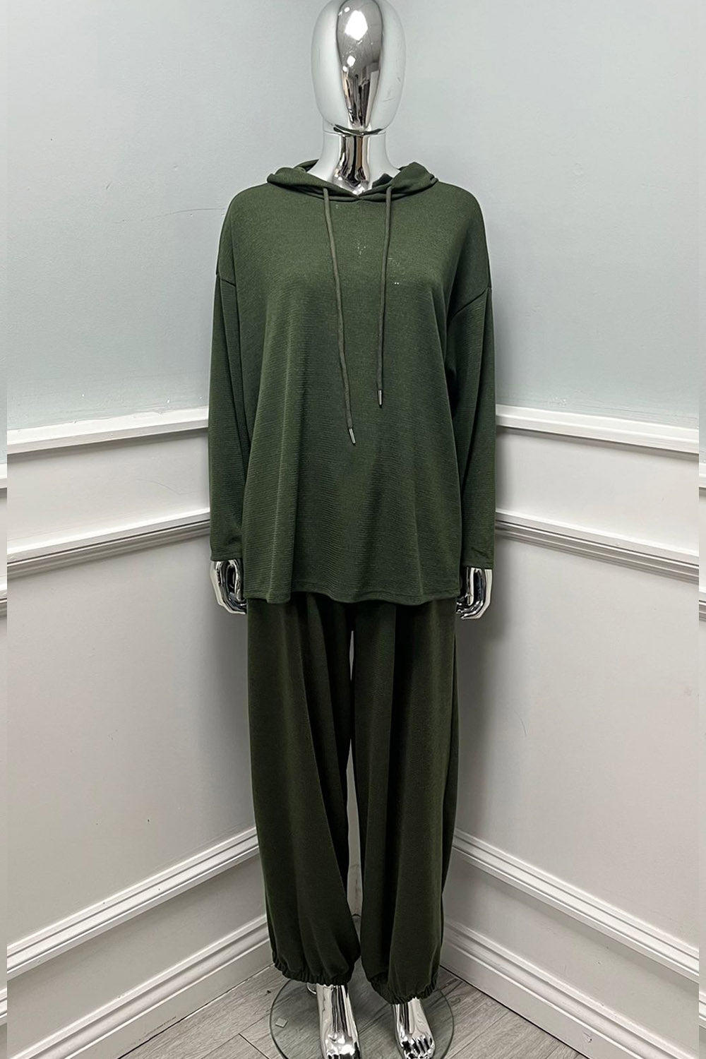 Ribbed lounge set with a relaxed hooded top and tapered joggers 25096 25113