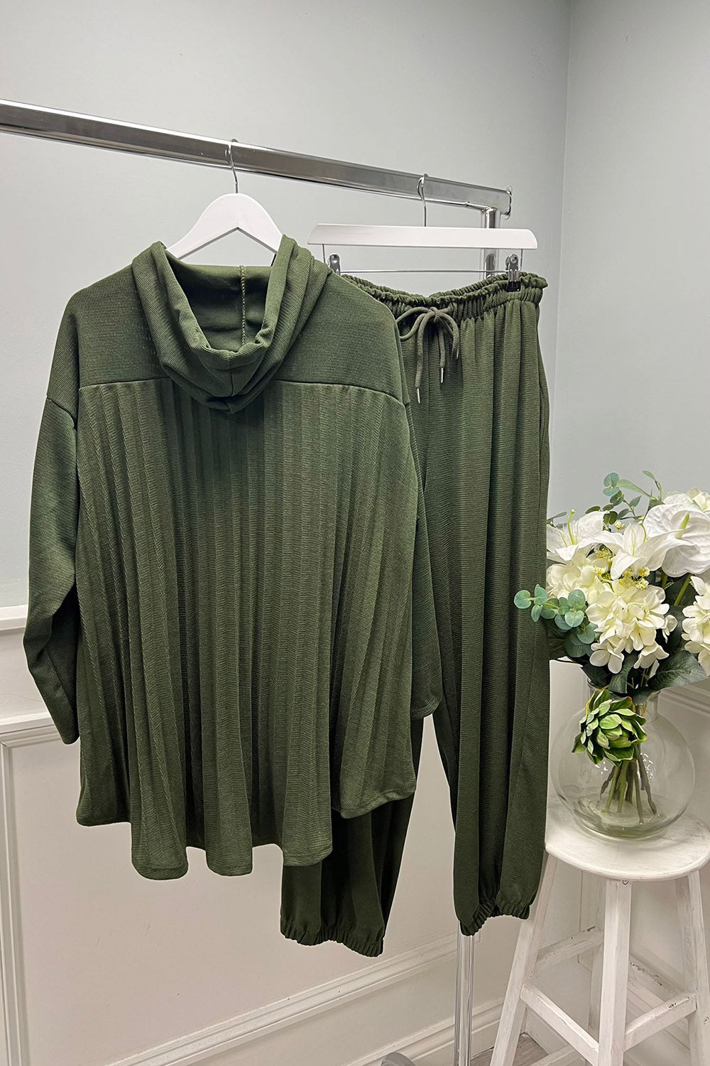 Ribbed lounge set with a relaxed hooded top and tapered joggers