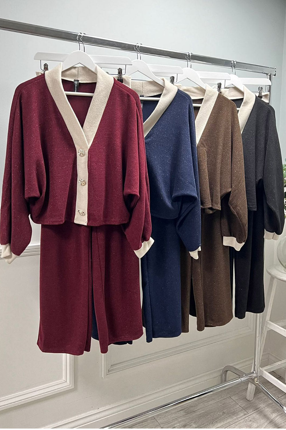 V Neck , cropped loungewear with gold-tone Button