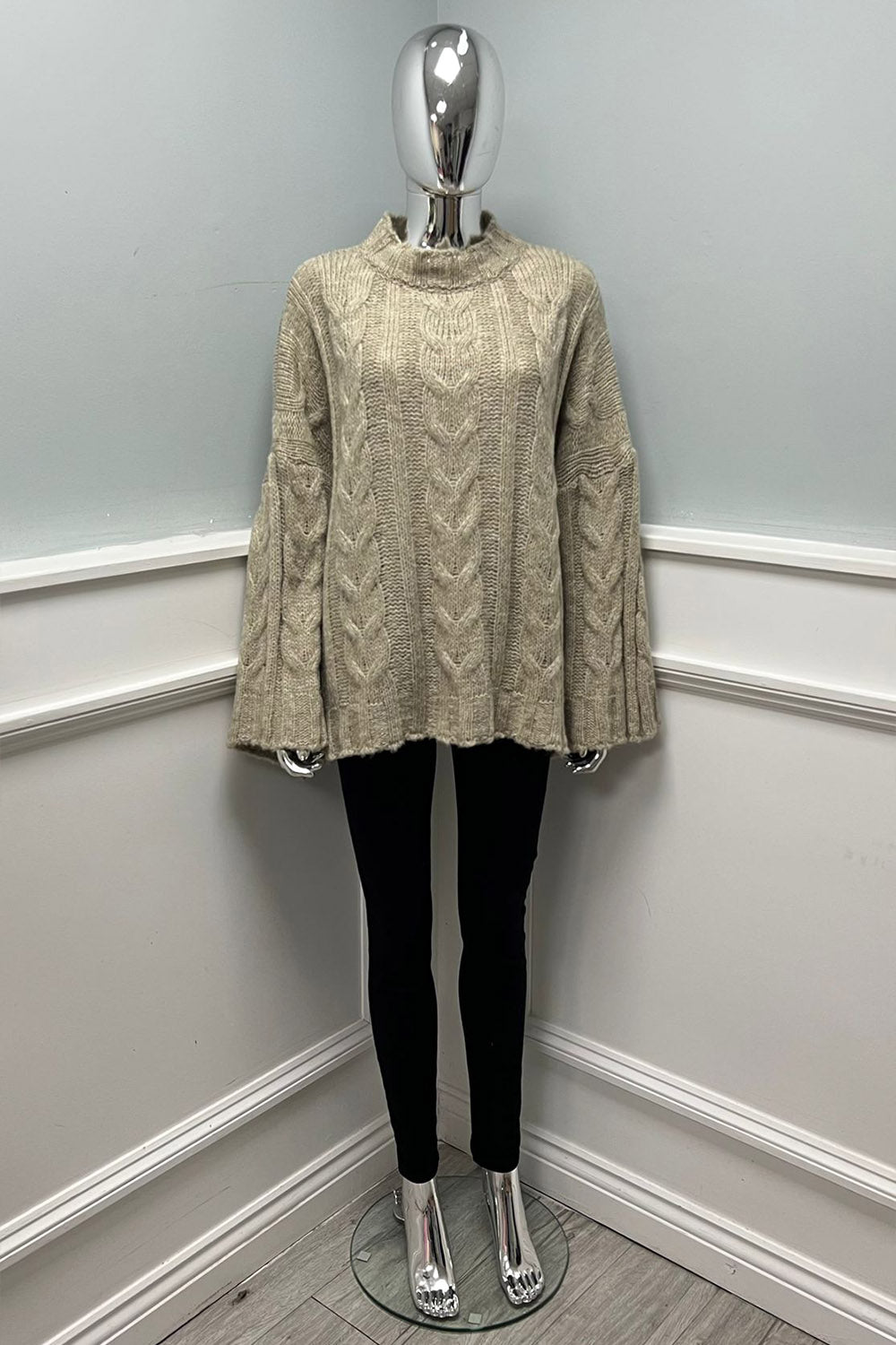 Oversized Cable knit jumper with wide and flared sleeves at the cuffs