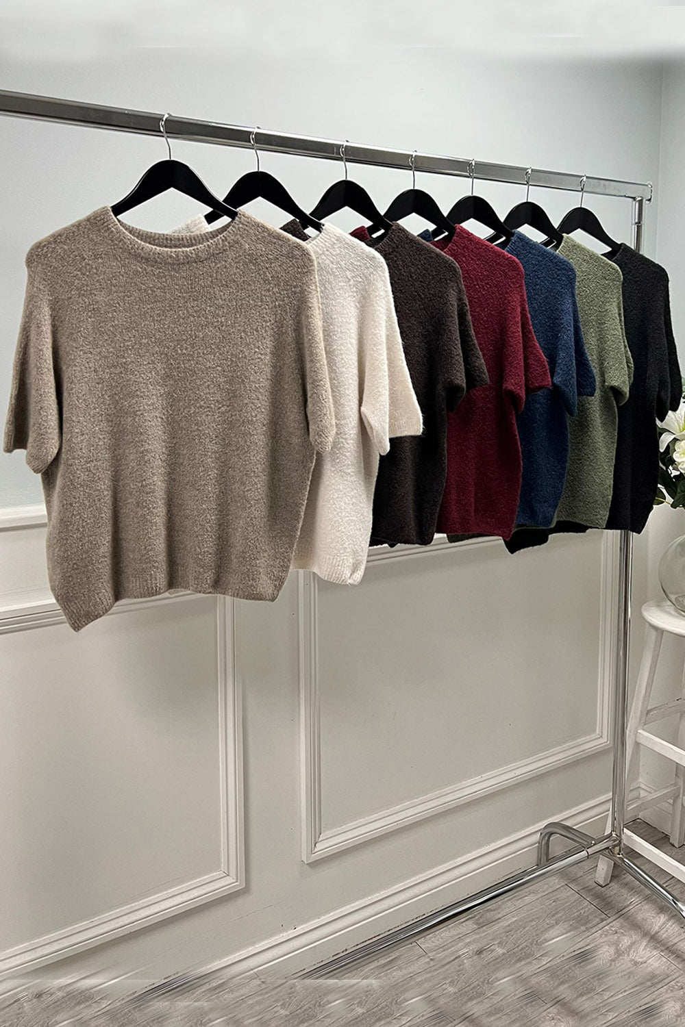 Soft brushed knit sweater with relaxed short sleeves 2951