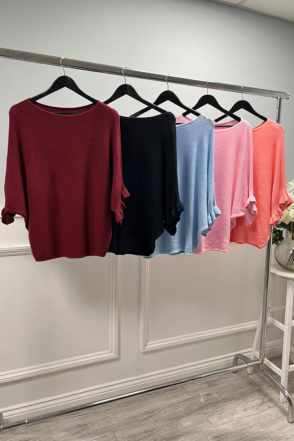 Round Neck, Frill Sleeve, Viscose Knitted Batwing Top- 303