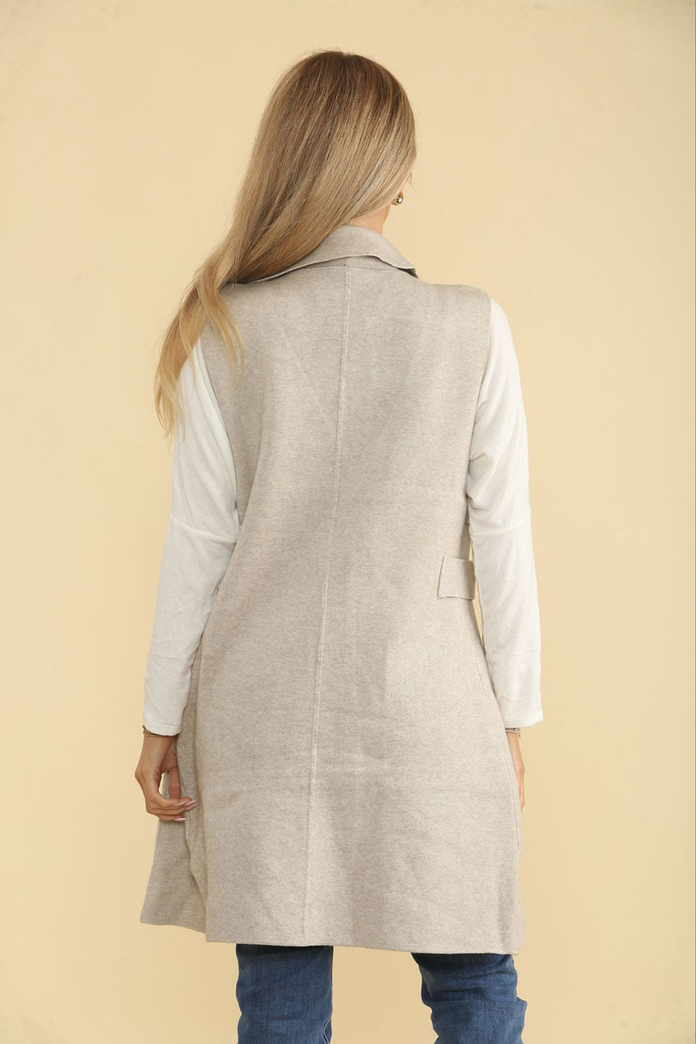 Sleeveless, open-front longline jacket with Notched lapel collar - 3112