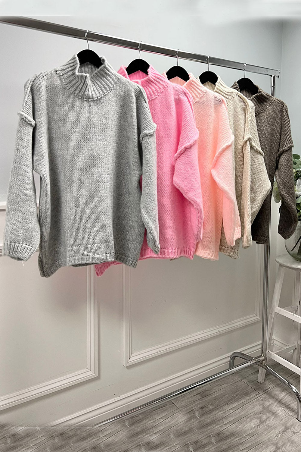 High Neck, Lana Wool, Viscose & Acrylic Knitted, Oversized Jumper - 65013
