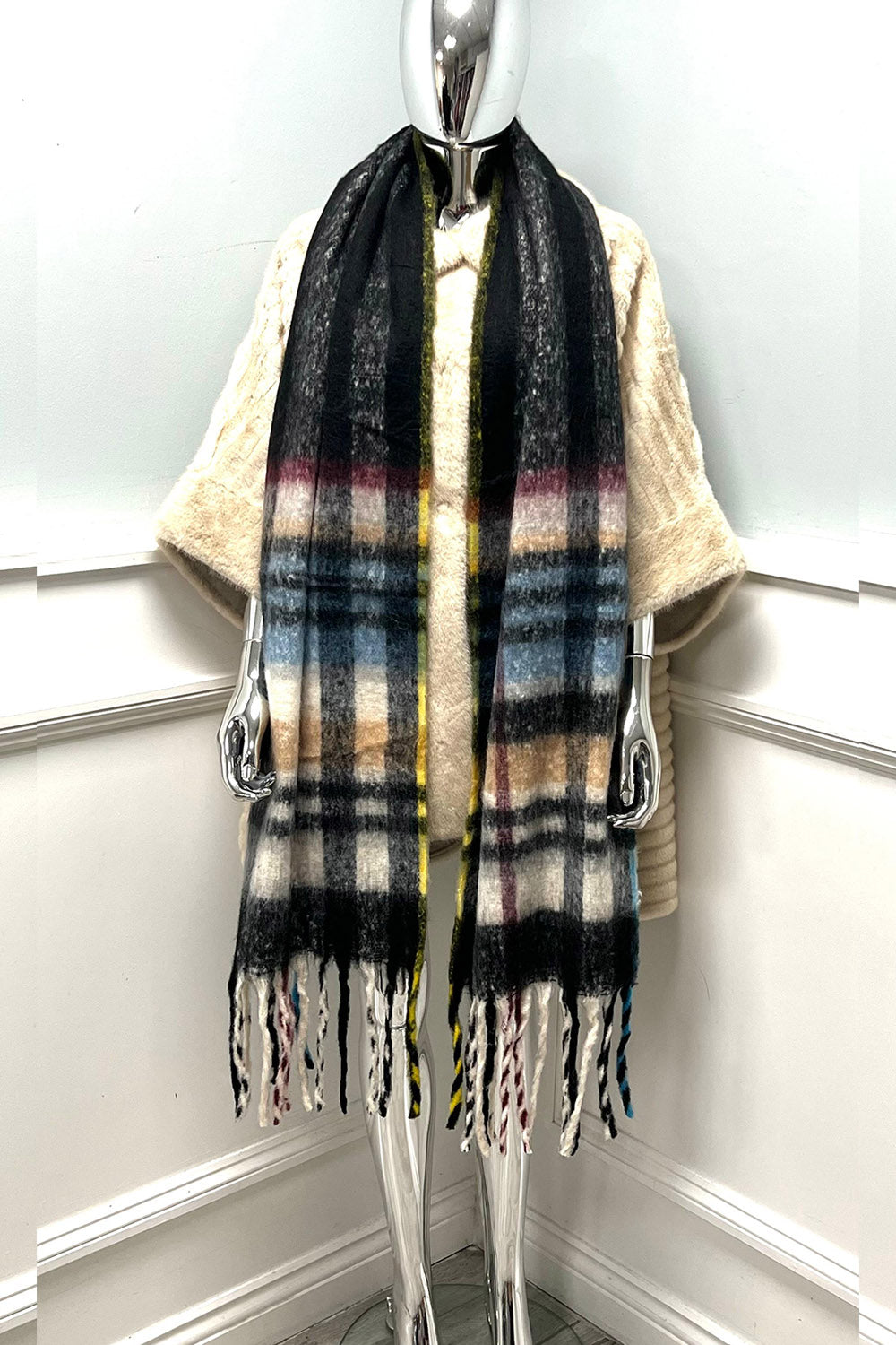 Plush, faux shearling belted coat with wide notched lapel collar, wrap-style front