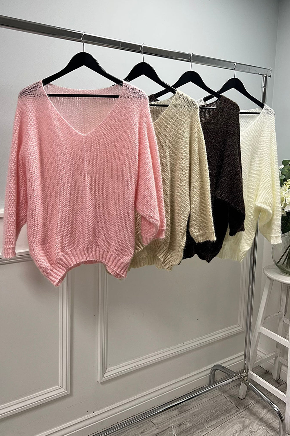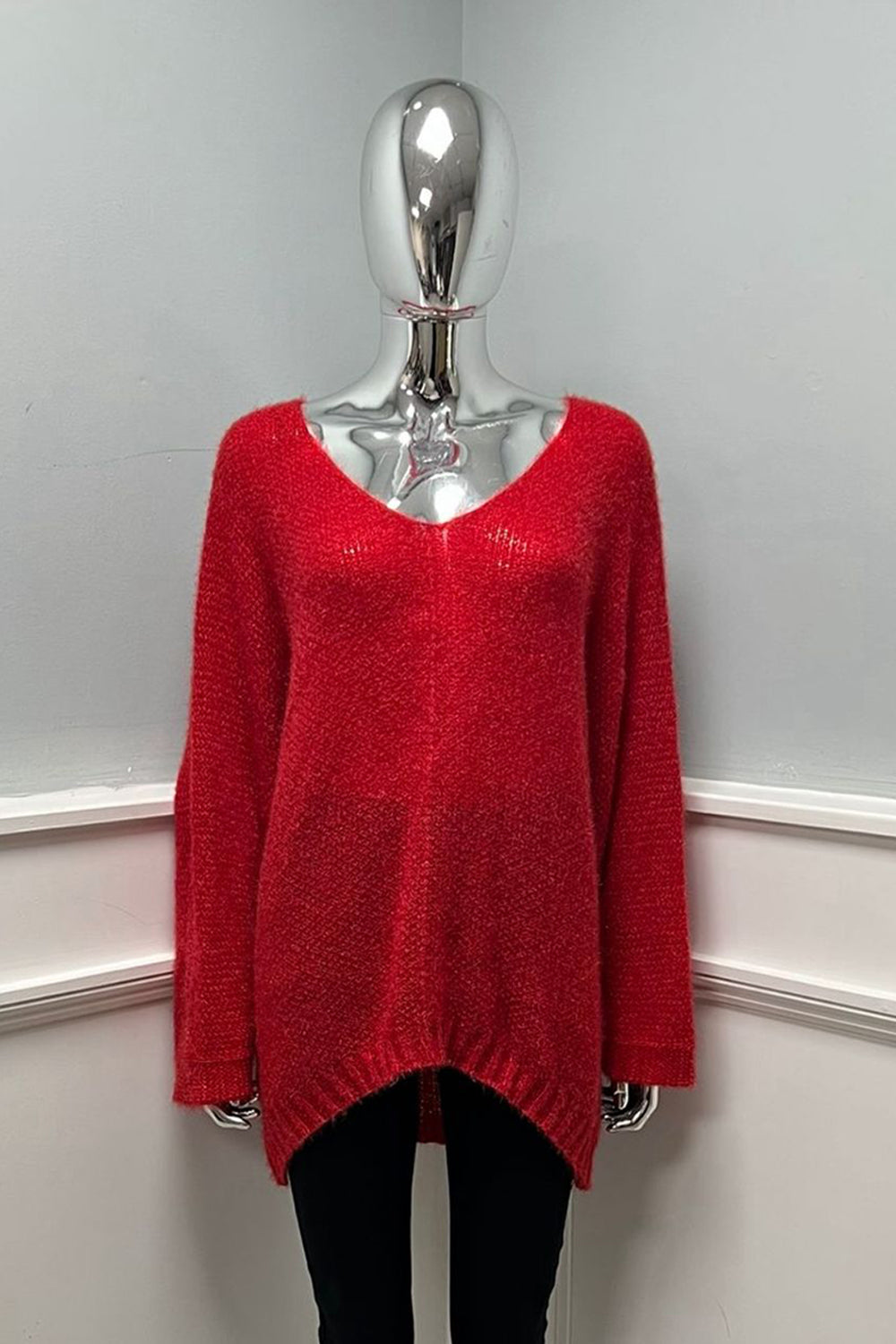fuzzy V-neck sweater: Bold Comfort in Soft Knit 7105