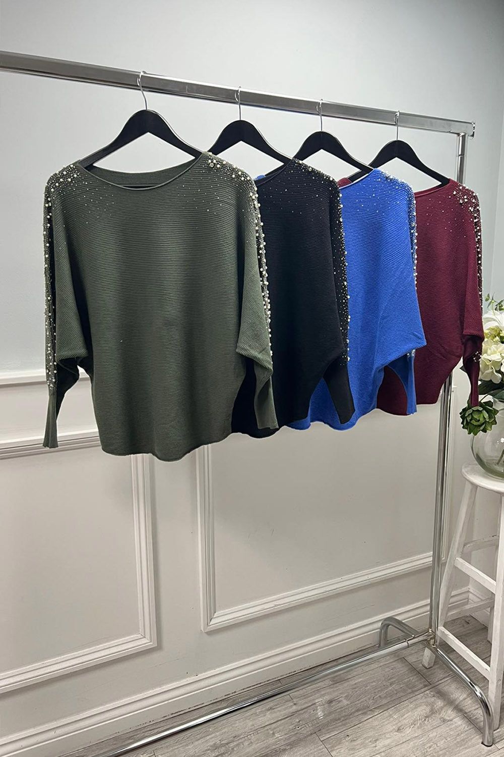 Slash Neck, Viscose Knitted, Ribbed Batwing Jumper
