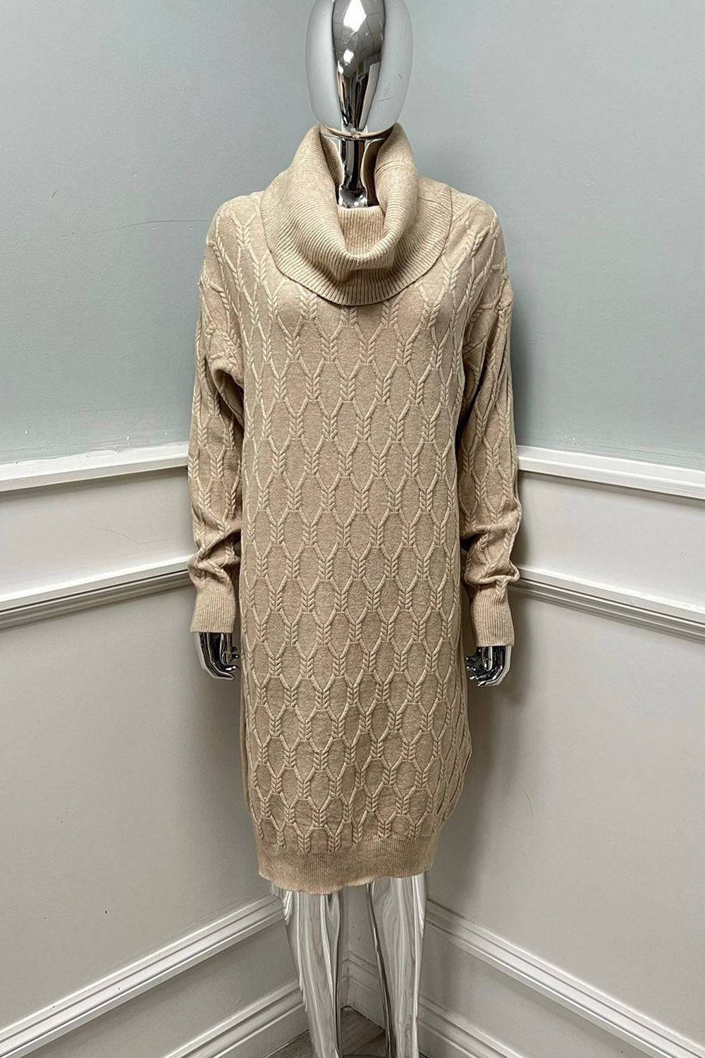 Cable-knit sweater dress with a relaxed cowl neck and long sleeves
