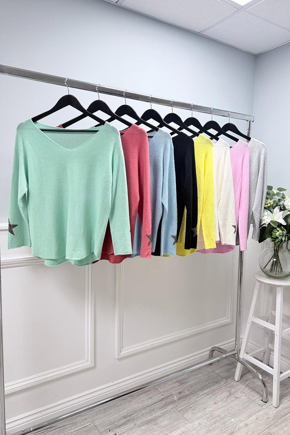 V-Neck, Diamanté Star ⭐ Detailed, Viscose Jumper - 969V star