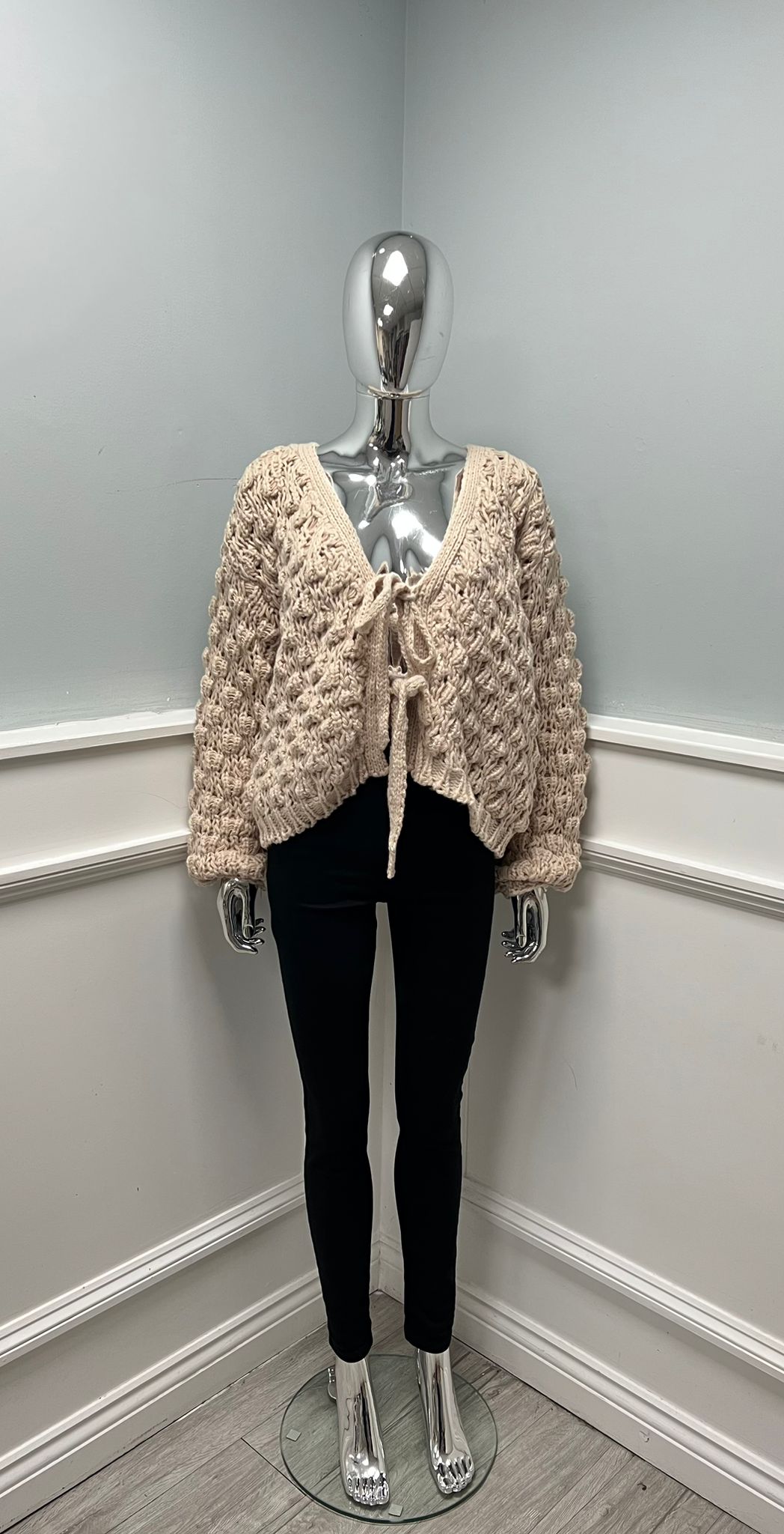 Cable-knit cardigan with tie-front detail and balloon sleeves JCM005