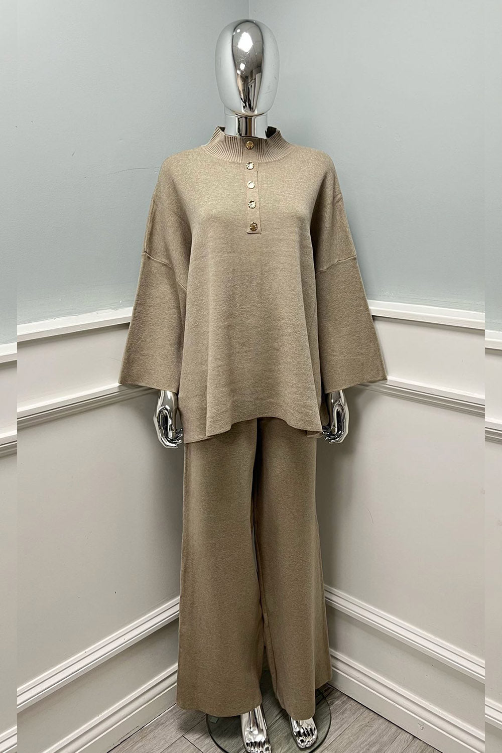 Relaxed fit, wide sleeves, half-button placket co ords Set