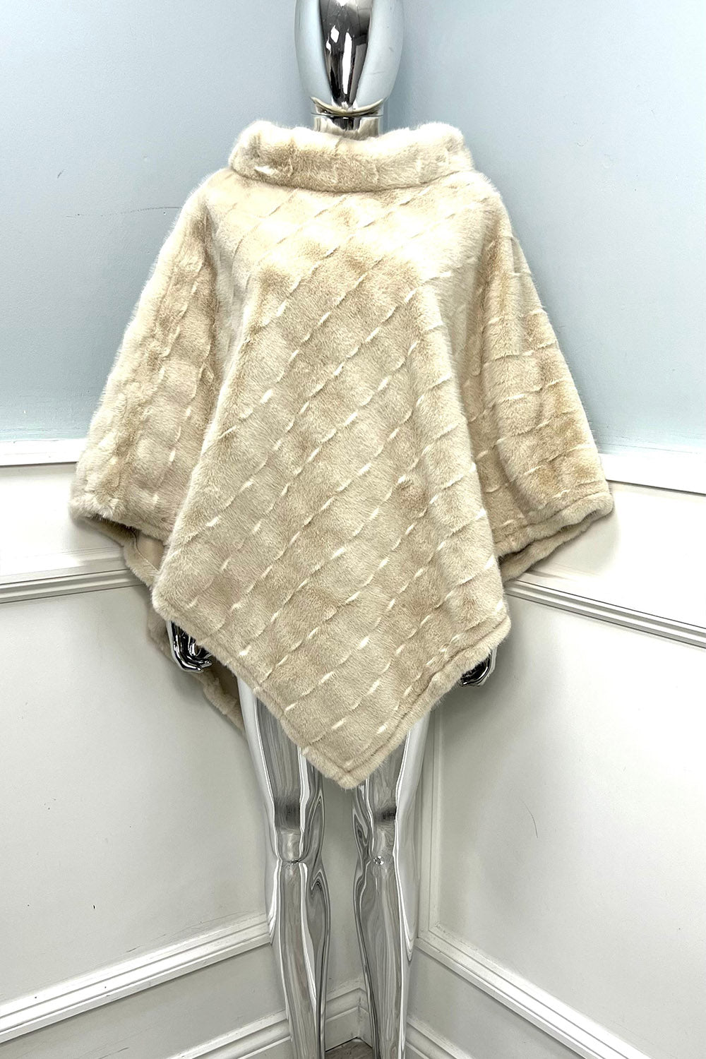 High cowl neck , faux fur cape - LM1289