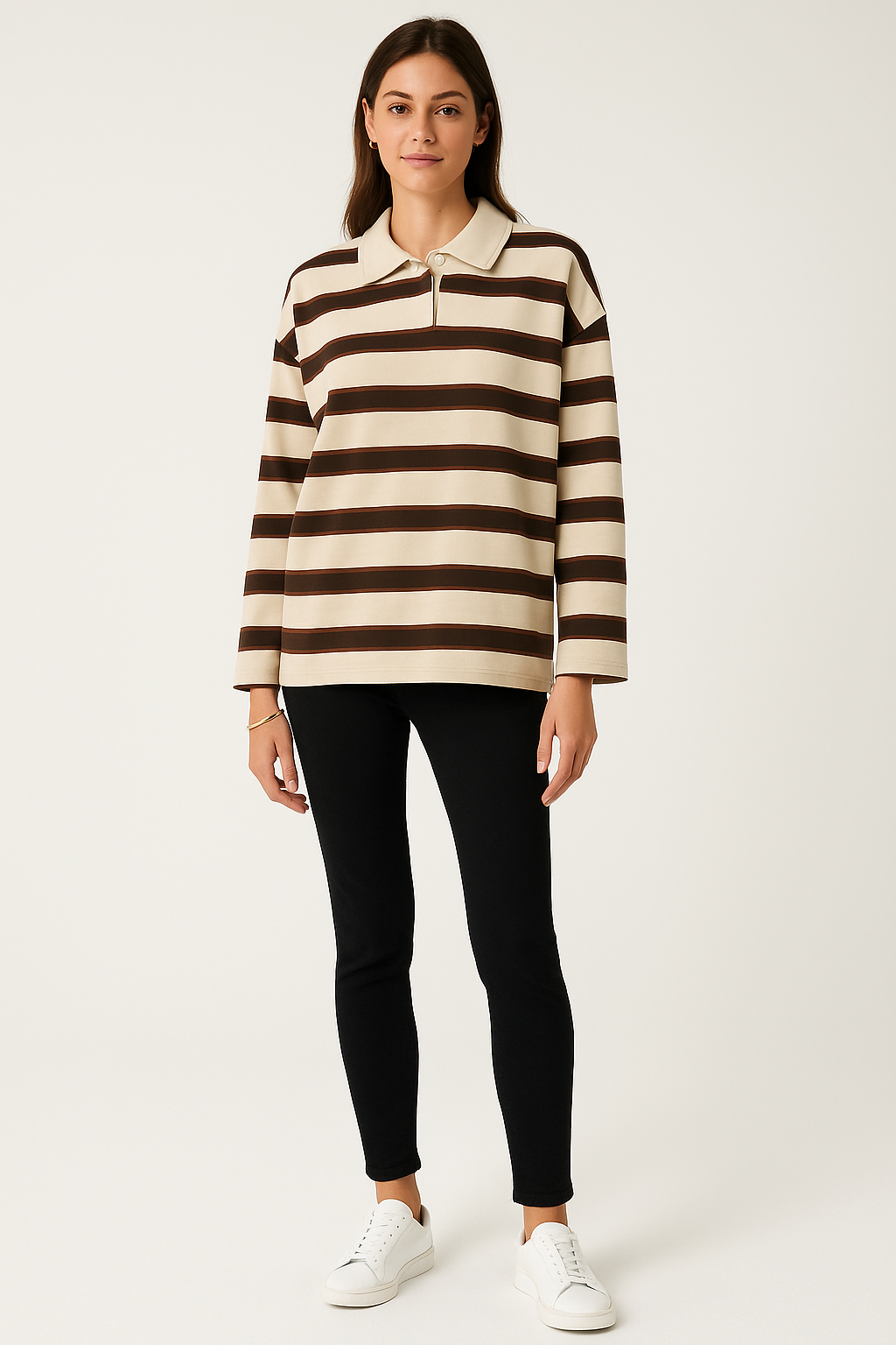 V Neck , cropped loungewear with gold-tone Button