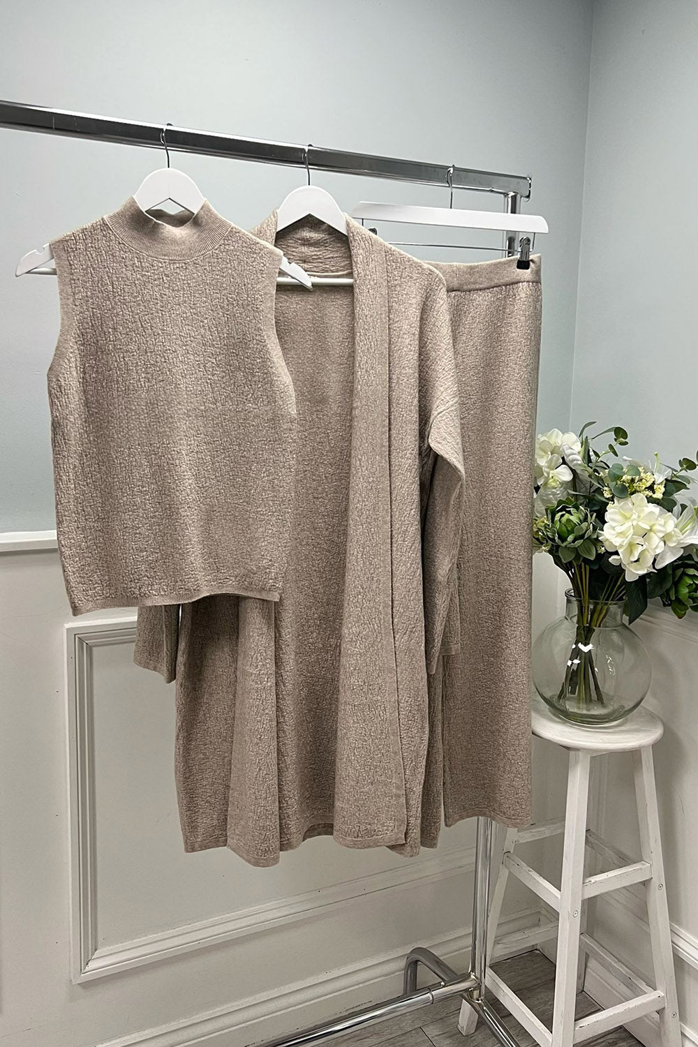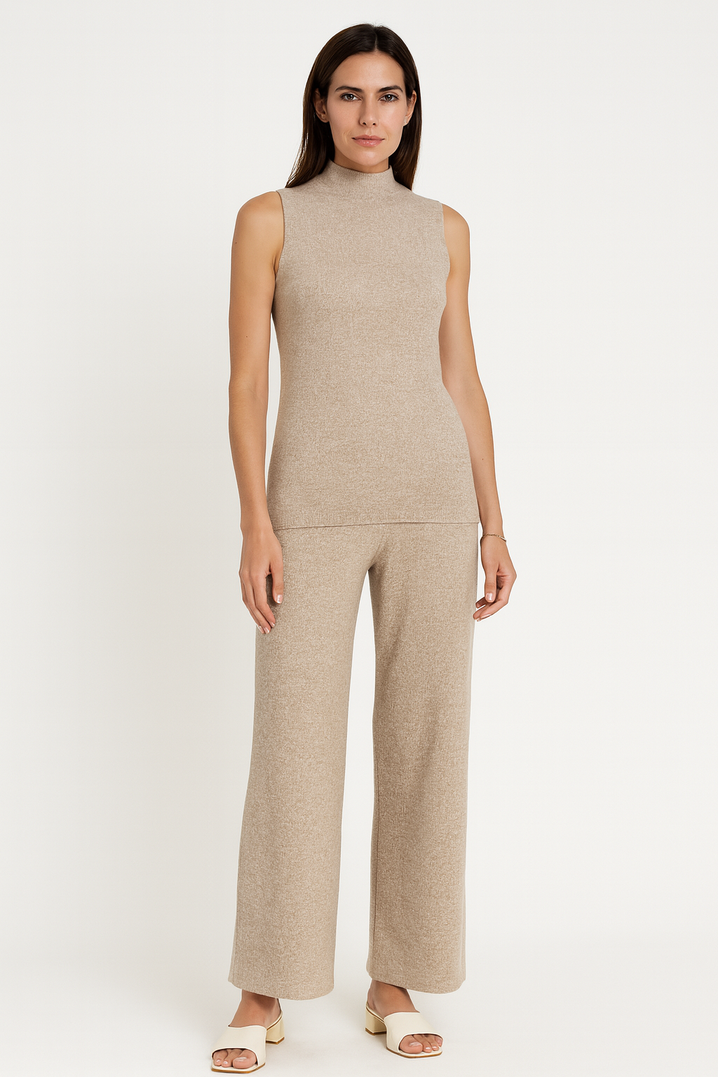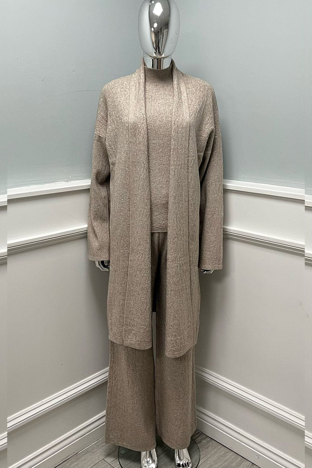 High Neck, Collared, Viscose, Polymide & Acrylic Knitted, Elasticated Waist, Wide Leg Three Piece Set - MC4329