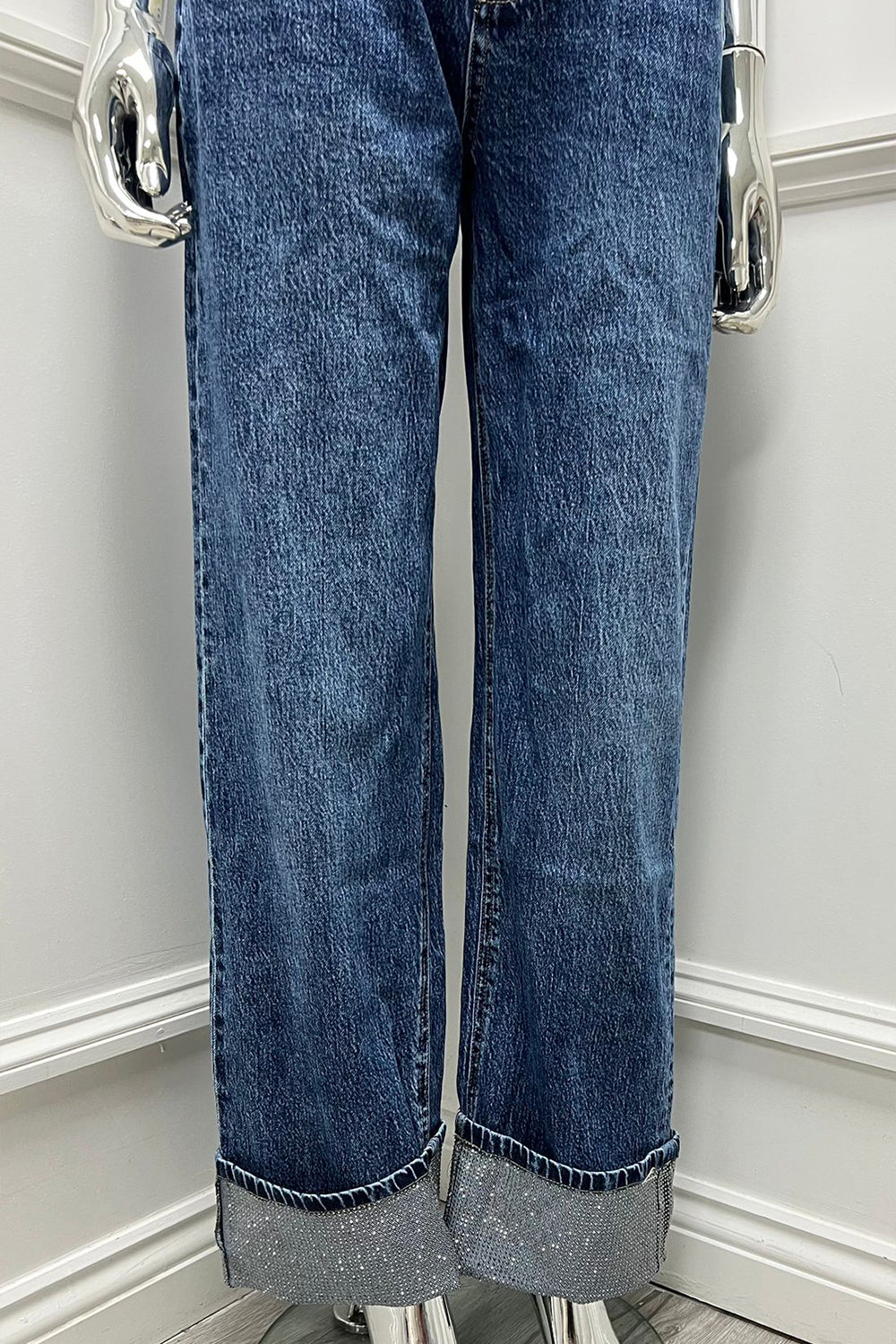 ‘Redial’ Diamanté Studded Detailed, Straight Leg Stretchy Denim Jeans RD7353