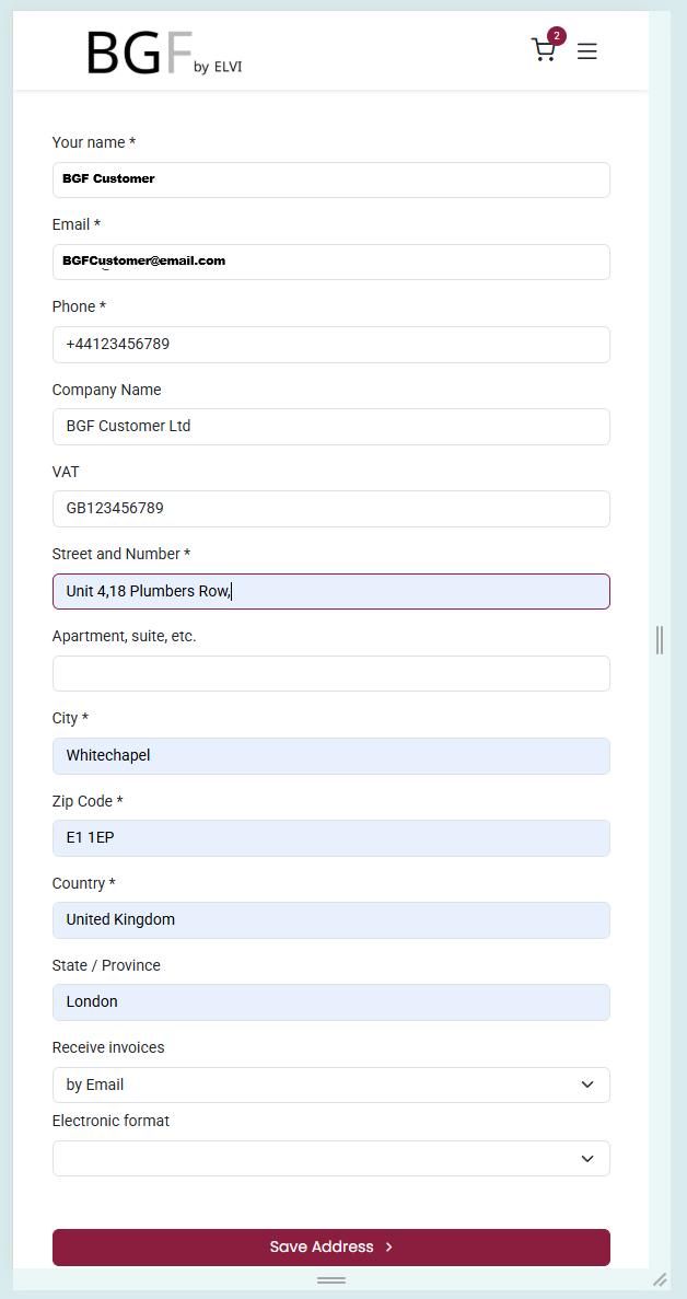 Check that your Delivery Address and Billing Address are correct