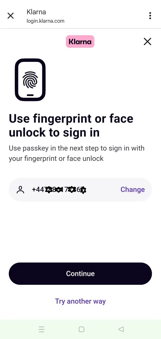 Choose Klarna from the payment options and tap Pay Now.