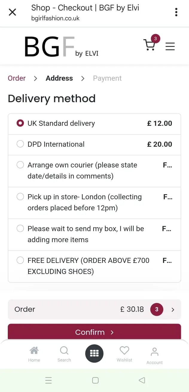Select your delivery method and click Confirm.