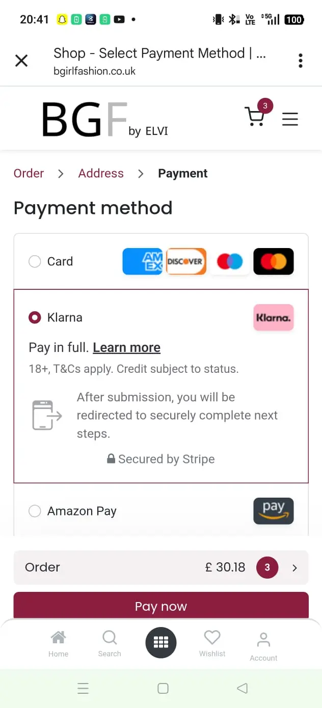 You can now shop on BGF by Elvi using Klarna – Buy Now, Pay Later. Please follow these simple steps: